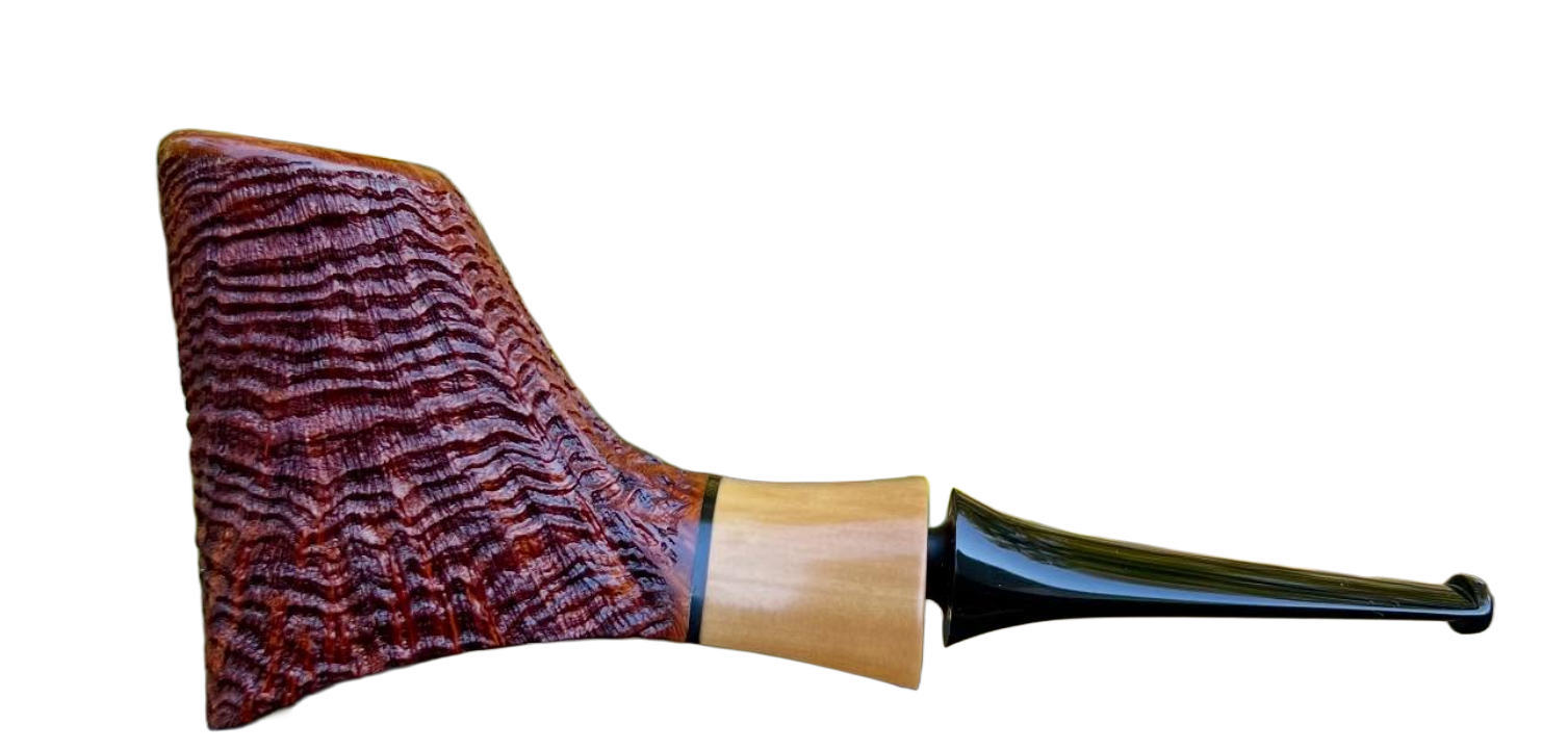 The stratus combines elements of a few classic pipe shapes with contemporary curves, resulting in a sleek design that will sit comfortably between puffs. The profile borrows from the classic lines of the tail section of the greatest airliner ever built, the Boeing 757/767 series (which is also the inspiration of my logo). That foundation is rounded out into a volcano / cutty / walrus hybrid to give the shape its completed form.